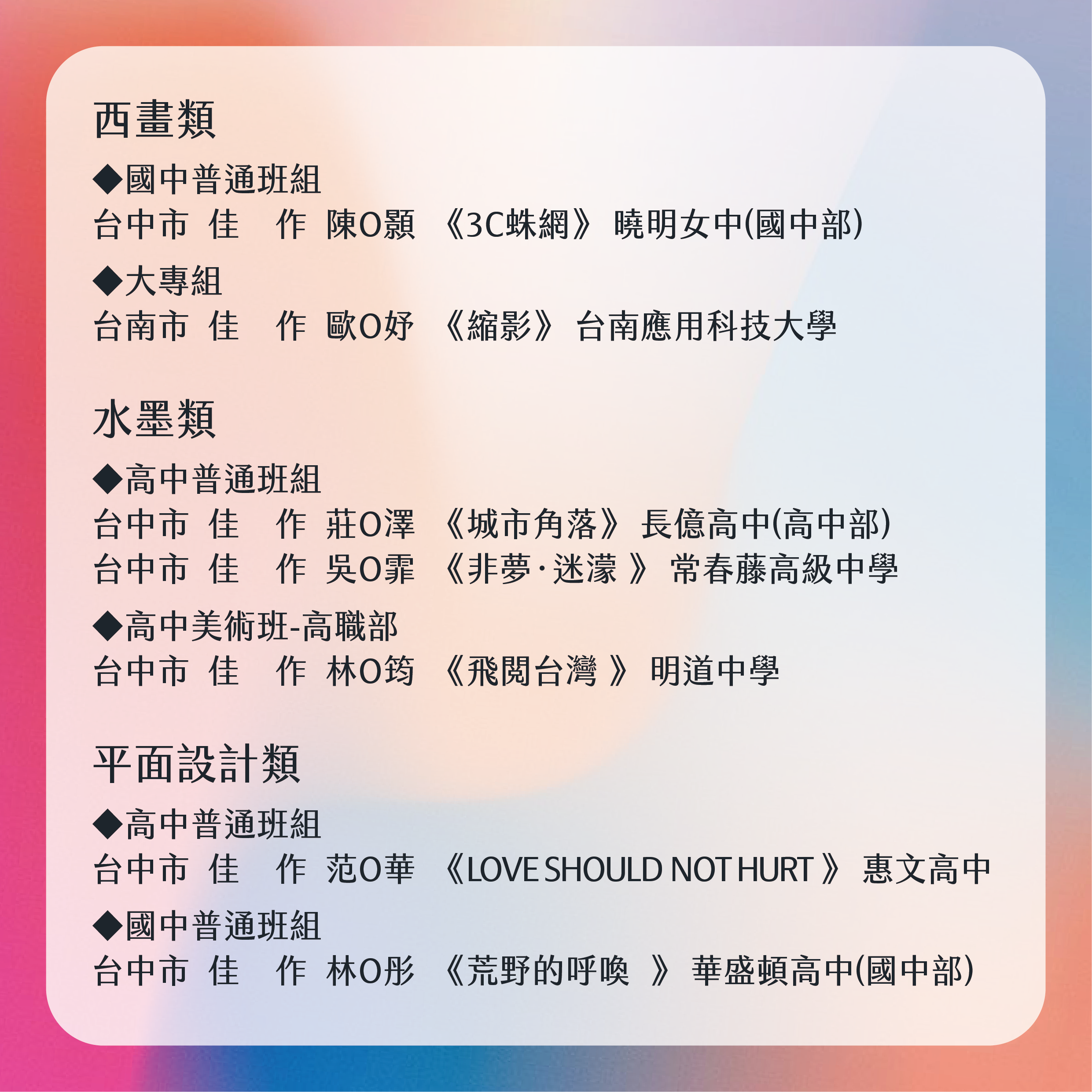 再次恭喜所有得獎的學生,期待你們持續用藝術描繪未來!🎨🌟