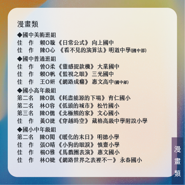 ▼漫畫類15名